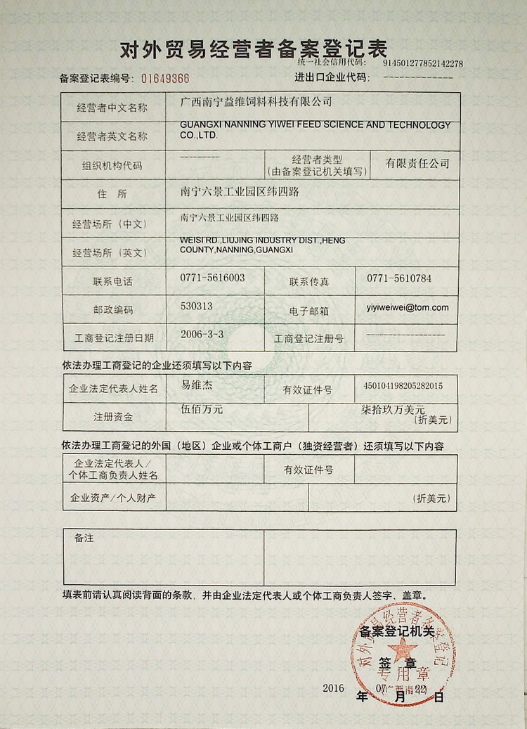 益維—對外貿易經(jīng)營(yíng)者備案登記表